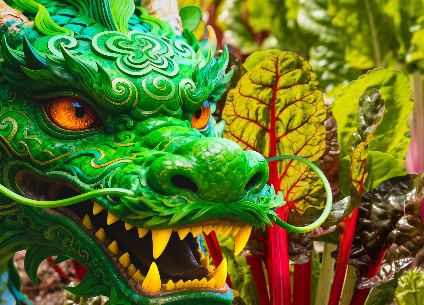 The slender stalks of chard lengthened into limbs and a tail, and the singed leaves multiplied and spread, becoming hard green scales. When he was finished, he stood around the same height as me, give or take a foot, depending on how he chose to coil his neck. He claimed he liked to slouch down to fit in with us humans, but I suspected it was because he kept banging his head on the doorway.